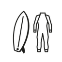 - Surfboard + wetsuit + rash guard
